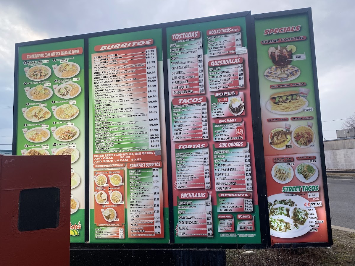 New. Shrimp filled with beans & cheese with pico de gallo, lettuce, guacamole & sour cream.